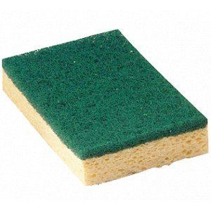 Tampon abrasif blanc sur éponge rose pour sanitaire, grand modèle