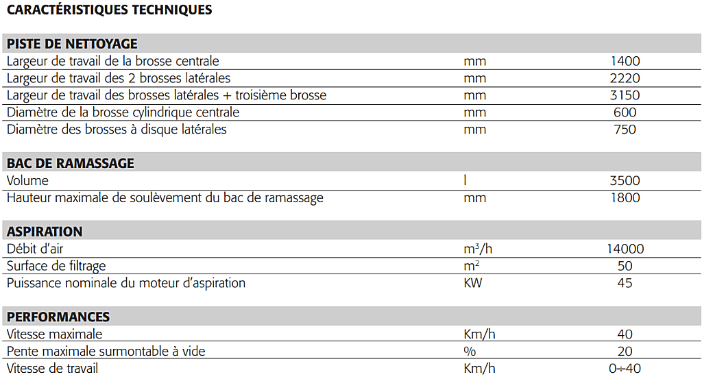 - Économisez jusqu'à 100 000 litres d'eau par an - À la différence des balayeuses traditionnelles, avec le modèle CS140 T, la fonction des brosses latérales devient auxiliaire (employées uniquement le long de bordures et de trottoirs), réduisant ainsi la consommation d'eau qui n'est, dans tous les cas, utilisée que sous forme vaporisée et seulement pour contrôler le niveau de poussières, sans mouiller le sol.