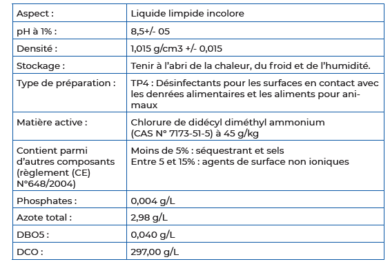 Bactéricide en condition de saleté à 1% selon la norme EN 1276 et EN 13697,
