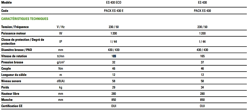 Vitesse de rotation : 165 tr/min