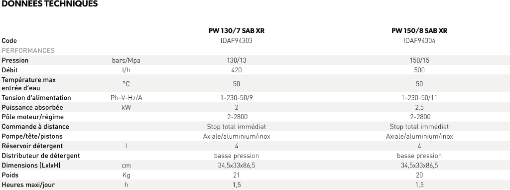 PW 130/7 SAB XRPW 150/8 SAB XR