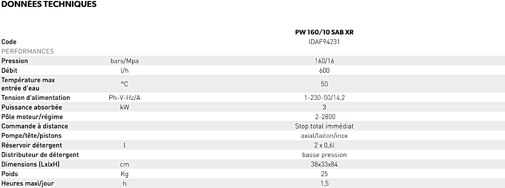 Pression : 160 bars