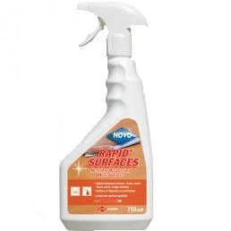 Pulvériser NOVO RAPID’SURFACES sur la surface à nettoyer. Laisser agir. Essuyer tout en frottant avec un chiffon, une éponge ou une microfibre de préférence humide
